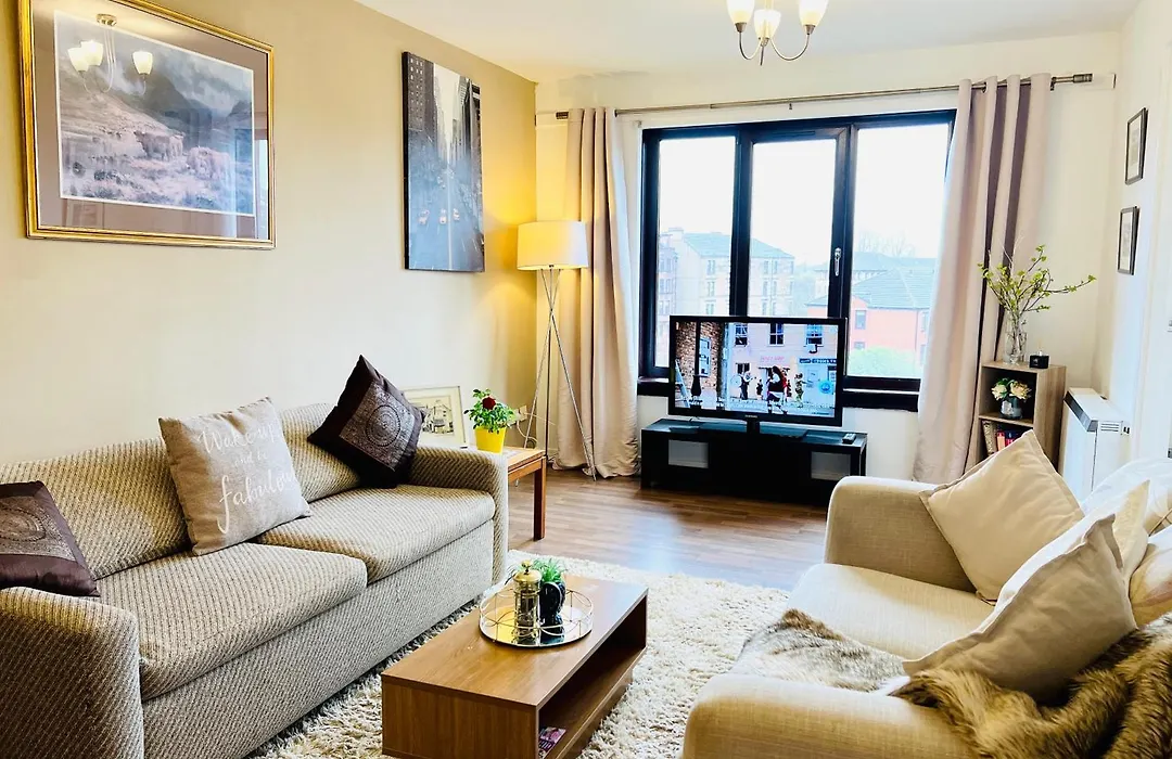 A Beautiful & Spacious 2-Bed Flat In City Centre With Free Parking apartman kínál egy teljesen felszerelt konyhát, valamint szobákat kanapéval, kávé/teafőzővel és ülősarokkal. Az apartman 6 km-re található a Riverside Museum of Transport and Technology és 2 km-re a Glasgow-i temető területétől, továbbá a Springburn Museum szintén a közelben van.